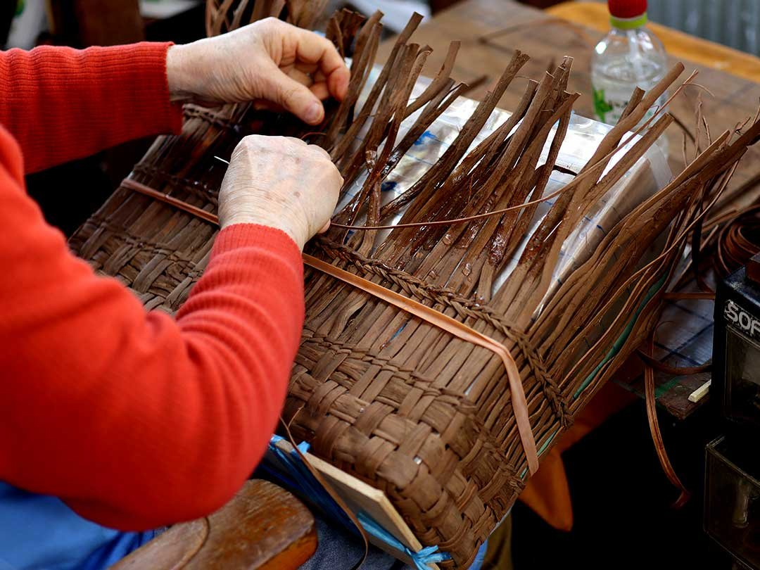素材の採取から、皮のなめし、編み上げまで。山郷の籠が生まれる物語をご覧ください。